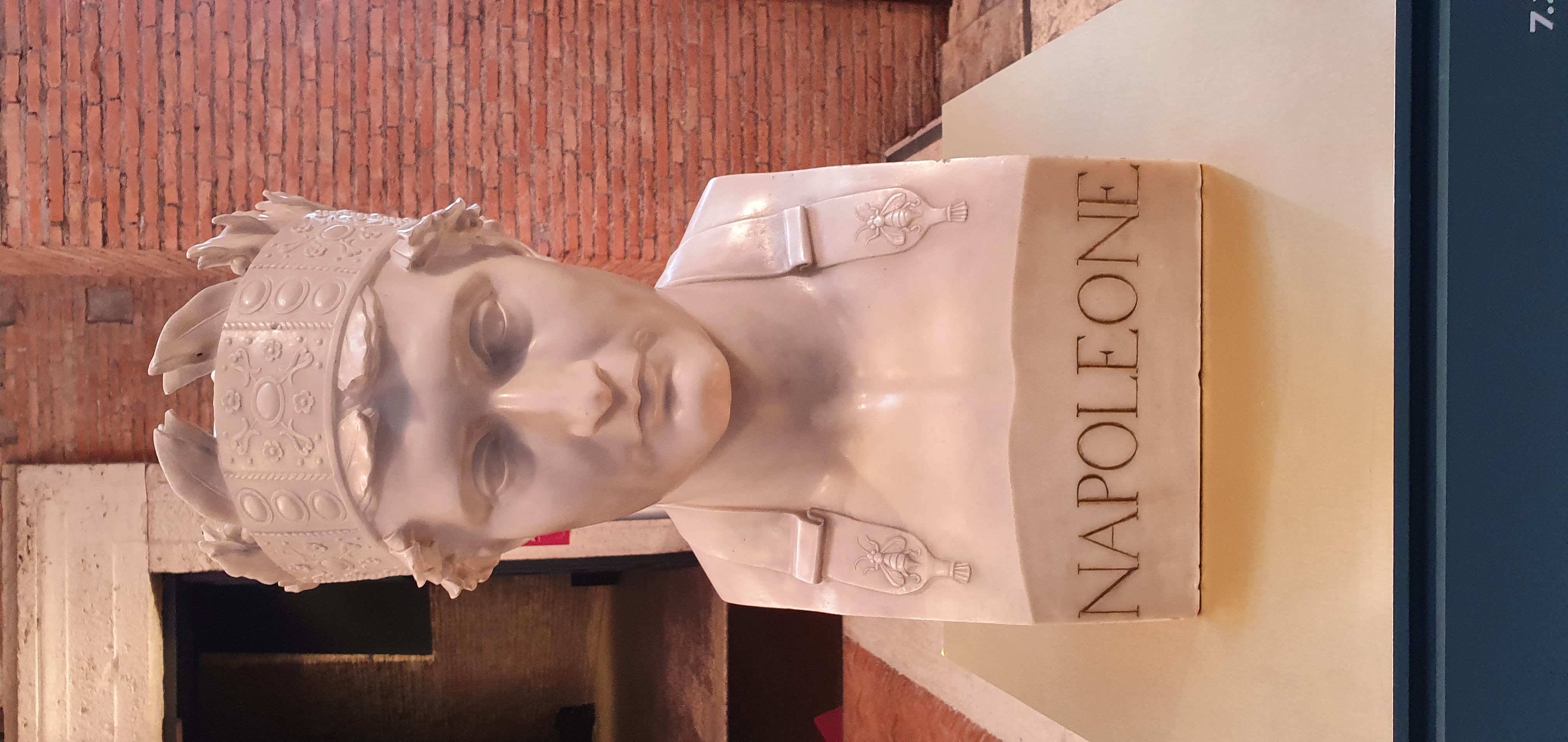 Tra le opere esposte, ad esempio, il gesso di Louis Rochet per la statua di Napoleone cadetto a Brienne (inizialmente visibile attraverso una riproduzione fotografica) dal Musée d’Yverdon et Région (Yverdon-les-Bains), il bronzo raffigurante Alessandro Magno a cavallo dal Museo Archeologico Nazionale di Napoli e il grande bronzo di Lorenzo Bartolini raffigurante Napoleone I Imperatore, dal Louvre, in cui Bonaparte è ritratto all’antica, con la corona d’alloro e le fattezze di un imperatore romano. Grandezza militare e visione di un impero sconfinato legano infatti Alessandro Magno a Napoleone il quale, come già molti condottieri prima di lui, tra cui Giulio Cesare, fece propria l’imitatio Alexandri. Napoleone si confrontò idealmente con altri imperatori come Augusto, presente con un ritratto in marmo proveniente dai Musei Capitolini. Nota era anche la sua ammirazione per Annibale, qui evocata dalla copia moderna del cosiddetto Annibale del Quirinale. La macro-sezione si chiude con la morte e l’apoteosi di Napoleone, considerato un eroe antico ma anche un santo e un taumaturgo, in continuità con i re del medioevo francese, come raffigurato nel celebre dipinto di A.J. Gros, Il generale Bonaparte visita gli appestati di Jaffa, presente in mostra attraverso l’incisione di A.C. Masson, proveniente dal Palais Fesch-Musée des Beaux-Arts di Ajaccio.