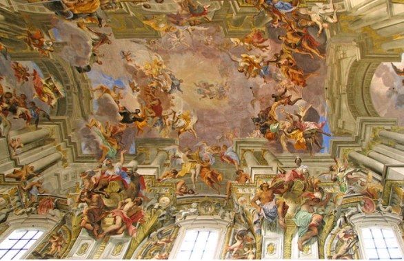 Nella splendida cornice di piazza Sant'Ignazio, la cui vivace scenografia rococò fa da quinta alla chiesa dei gesuiti, l'artificio barocco è ancora una volta protagonista. Come abbiamo avuto modo di vedere in passato, il virtuosismo delle arti plastiche raggiunge nel periodo tardo-barocco straordinari effetti di teatralità che mirano a sbalordire il pubblico spingendo all'estremo il potere illusivo dell'arte. La chiesa gesuita di Sant'Ignazio nel complesso del Collegio Romano, con i dipinti di Andrea Pozzo e dei suoi allievi, è sicuramente uno degli esempi più suggestivi di queste ricerche. L'ordine dei gesuiti, cui appartiene anche Papa Francesco, ha avuto un ruolo indiscutibile nella vita culturale della Roma del Seicento.