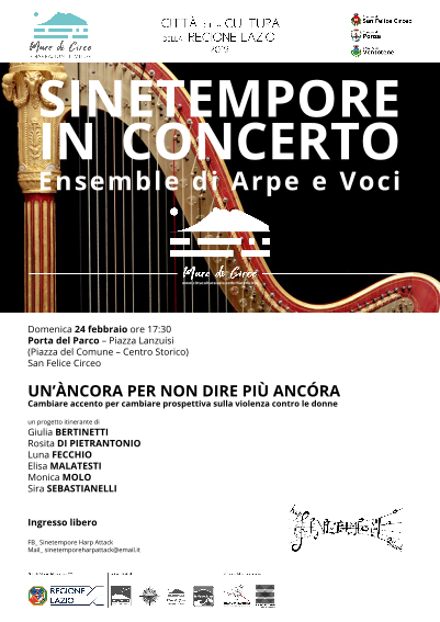 24 FEBBRAIO 2019 A SAN FELICE CIRCEO L’ENSEMBLE SINETEMPORE HARP ATTACK IN CONCERTO, CONTRO LA VIOLENZA SULLE DONNE