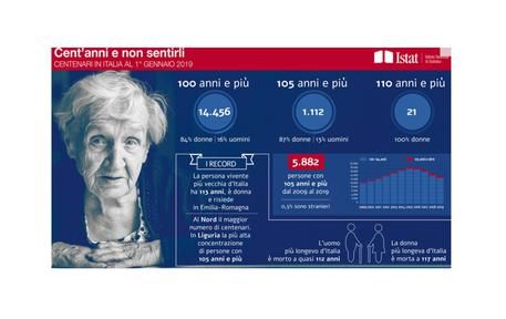 Sono usciti in questi giorni i dati Istat sull’invecchiamento della popolazione e l’Italia è risultata il paese più vecchio d’Europa con 2 milioni di over 85 e 14.456 ultracentenari. La maggior parte dei centenari risiede al nord cosi come la donna più anziana che ha 113 anni. Il rapporto pubblicato dall’Istat ha un titolo incoraggiante: “Cent’anni e non sentirli” ma, in realtà, sembrano tutti molto preoccupati. Il problema è il welfare che dovrà far fronte a nuove richieste di assistenza e servizi in un mondo in cui il cerchio parentale non è più in grado di assistere i suoi cari.
