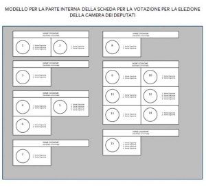 Ogni scheda sarà divisa in un certo numero di aree separate tra loro, corrispondenti a ciascun partito o coalizione.